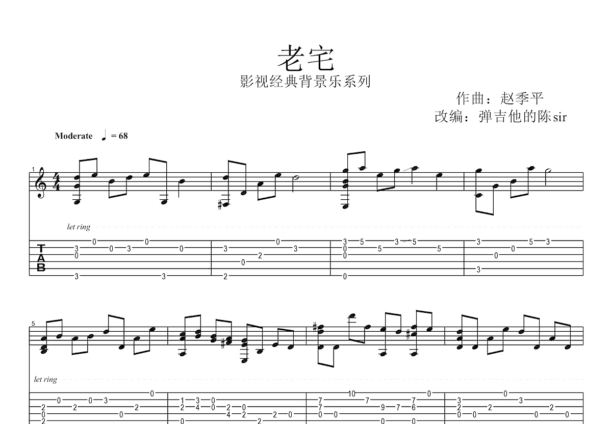 《老宅》是由著名作曲家赵季平创作的一部作品,这部作品以其深沉的情感和丰富的音乐元素,展现了对传统与历史的深刻反思以及对家园的深情缅怀。赵季平,中国当代著名的作曲家、音乐理论家,他的作品广泛涉及交响乐、歌剧、影视音乐等多个领域,在国际上享有盛誉。 《老宅》通常被看作是赵季平对故乡情感的一种寄托,通过对老宅及其周围环境的细腻描绘,唤起人们对过往生活的回忆和对传统价值的思考。作品中融合了中国传统的音乐元素,如古筝、二胡等民族乐器的使用,以及中国民谣的旋律,这些都为整部作品增添了一种独特的东方韵味。 在音乐表现上,《老宅》通过多层次的旋律交织、丰富的和声变化和节奏对比,构建了一个既古老又充满生命力的世界。它不仅仅是对一个物理空间的描绘,更是在时间与记忆的维度上,探索了人与环境、过去与现在的深刻联系。作品中既有宁静祥和的场景,也有对变迁与失落的感慨,展现了复杂的人类情感和对自然、历史的敬畏之情。 总之,《老宅》是一部具有深厚文化内涵和艺术感染力的作品,它不仅反映了作曲家个人的情感世界,也触及了更广泛的文化和人性的主题,为听众提供了一次深刻的艺术体验。