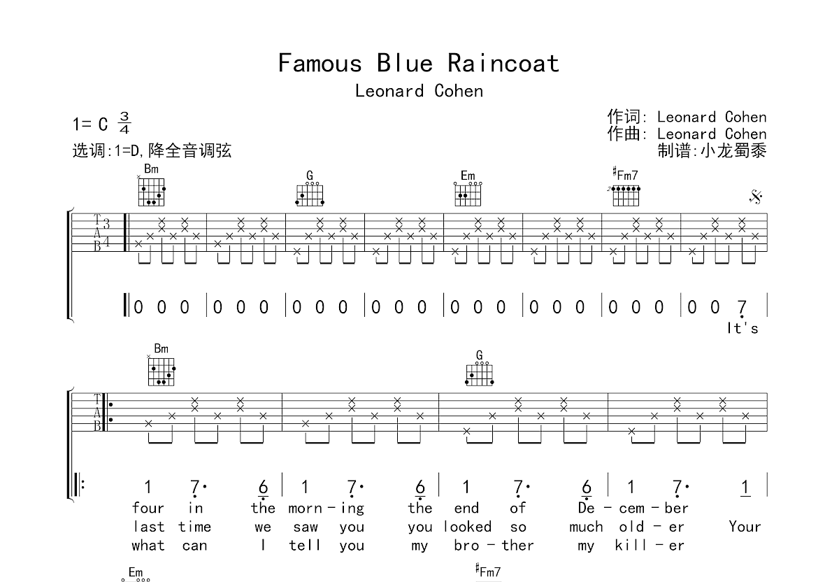 Leonard Cohen《Famous Blue Raincoat》吉他谱