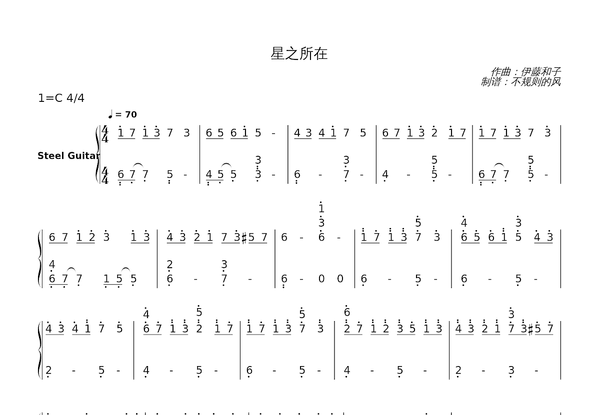 1、【【 空の軌跡 主題歌 】】的《星之所在》C调钢琴谱。 2、请听试听效果,曲谱问题请站内联系咨询。