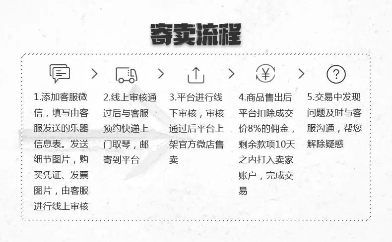 平台定价商品:服务费为结算价的8%。一般情况下结算价为乐器售出价的基础上,扣除活动优惠后的最终价格,最低成交价为平台定价区间最低价